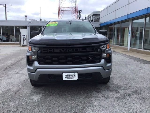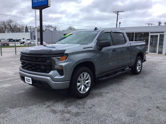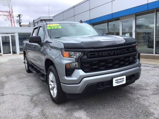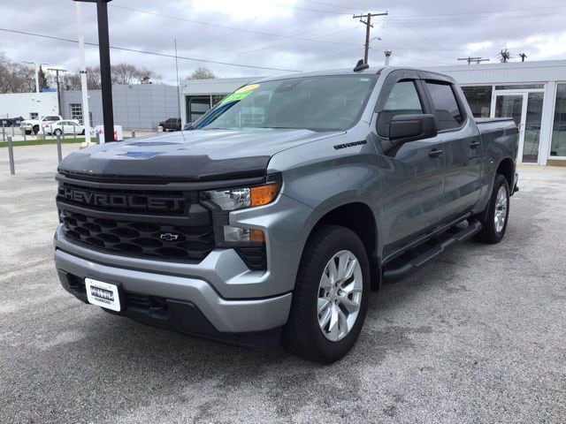 CARFAX One-Owner. 18/21 City/Highway MPG 4X4, Trailer Tow Package, Running Boards, Bedliner, Remote Start, Backup Camera, *BLUETOOTH, HANDS-FREE*, Apple CarPlay & Android Auto, Cruise Control, Keyless Start, Lane Departure Warning, Steering Wheel Controls, 10-Way Power Driver Seat w/Lumbar, 120-Volt Bed Mounted Power Outlet, 120-Volt Instrument Panel Power Outlet, 3.42 Rear Axle Ratio, 3.5 Monochromatic Display Driver Info Center, 4 Black Round Assist Steps (LPO), 40/20/40 Front Split-Bench Seat, Air Conditioning, Apple CarPlay/Android Auto, Assist Step & Tonneau Value Package II (LPO), Auto-Locking Rear Differential, Black Chrome Exhaust Tip (LPO), Black Name Plates (LPO), Black Tailgate CHEVROLET Lettering (LPO), Bluetooth® For Phone, Chevytec Spray-On Black Bedliner, Color-Keyed Carpeting Floor Covering, Compass, Custom Convenience Package, Custom Value Package, Dark Essentials Package (LPO), Deep-Tinted Glass, Dual Rear USB Ports (Charge Only), Electric Rear-Window Defogger, Electrical Steering Column Lock, Electronic Cruise Control, EZ Lift Power Lock & Release Tailgate, Following Distance Indicator, Forward Collision Alert, Front Black Bowtie Emblem (LPO), Front Frame-Mounted Black Recovery Hooks, Front Pedestrian Braking, Front Rubberized Vinyl Floor Mats, HD Rear Vision Camera, Heated door mirrors, High Capacity Suspension Package, Hitch Guidance, IntelliBeam Automatic High Beam On/Off, Lane Keep Assist w/Lane Departure Warning, LED Cargo Area Lighting, Manual Tilt Wheel Steering Column, OnStar & Chevrolet Connected Services Capable, Power driver seat, Power Front Windows w/Driver Express Up/Down, Power Front Windows w/Passenger Express Down, Power Rear Windows w/Express Down, Preferred Equipment Group 1CX, Rear 60/40 Folding Bench Seat (Folds Up), Rear Rubberized-Vinyl Floor Mats, Remote Keyless Entry, Remote Vehicle Starter System, SiriusXM Radio, Standard Tailgate, Theft Deterrent System (Unauthorized Entry), Trailering Package, Tri-Fold Soft Tonneau Cover (LPO), Wheels: 20 x 9 Bright Silver Painted Aluminum, Wireless Phone Projection. 2023 Chevrolet 4WD Sterling Gray Metallic Silverado 1500 Custom 2.7L Turbo 8-Speed Automatic 4D Crew Cab
